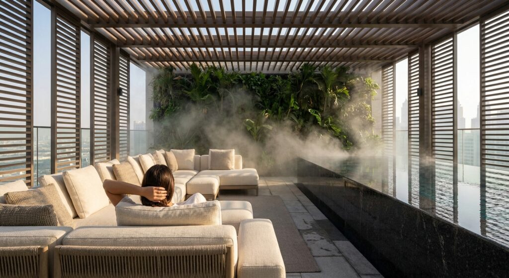 The functionality of outdoor living spaces in Dubai’s climate depends on active and passive cooling strategies that reduce surface temperatures and ambient air temperatures to tolerable levels. Passive approaches include high-albedo paving materials, overhead shade structures with optimized porosity ratios, and the strategic placement of thermal mass elements that remain shaded during peak solar gain periods. Active systems incorporate misting installations, radiant cooling panels, and forced-air circulation, all calibrated to specific humidity thresholds.